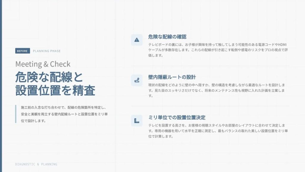 壁掛けテレビで一番大切なのは、見えない「土台作り」です。