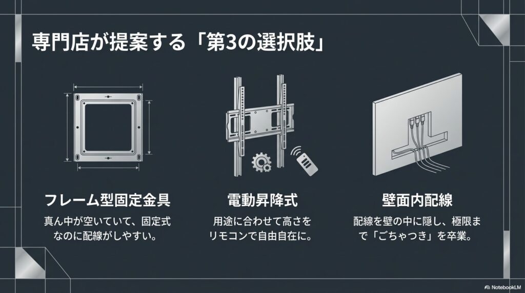 【プロが断言】壁掛けテレビ金具、スイングか固定か?失敗しない選び方と「重量制限の罠」