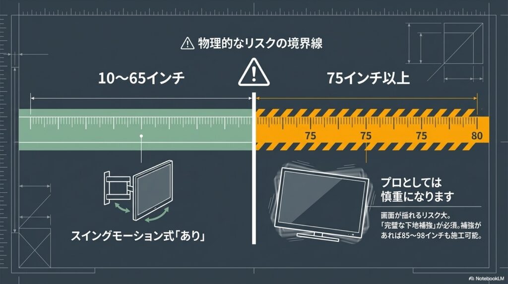 75インチ以上をスイング式にするなら、壁内部の『完璧な下地補強』が絶対条件になるね。