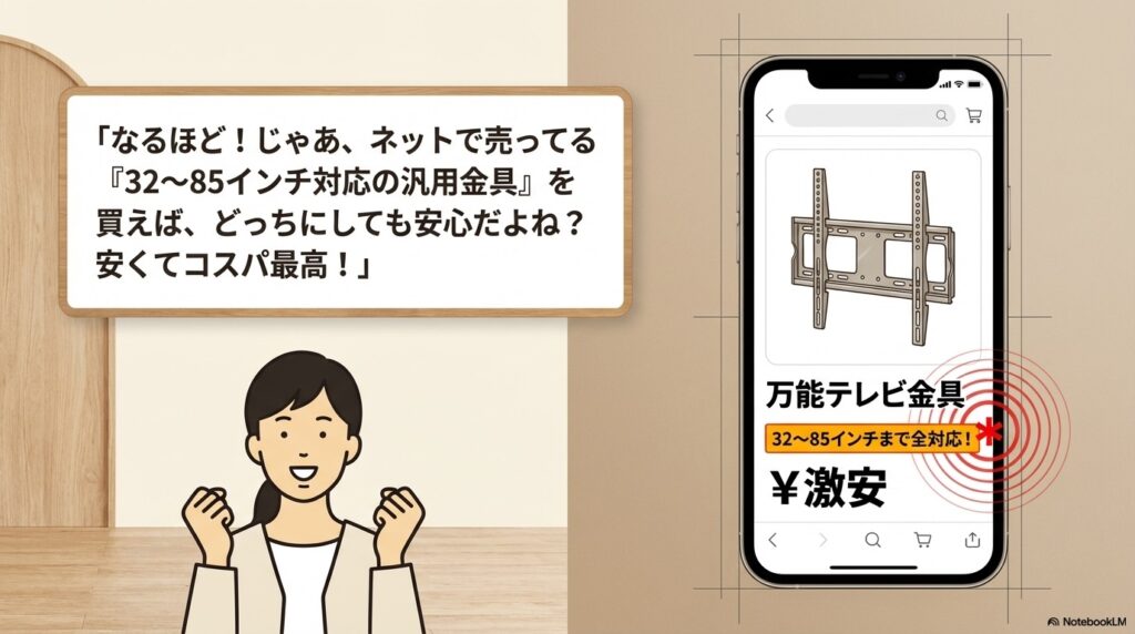 ネットで売られている「32〜85インチ対応」などの汎用金具を選ぶ際、
