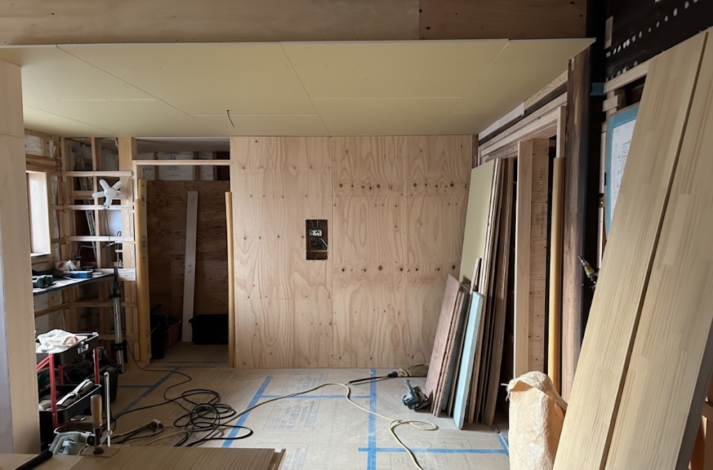 だいたいは引き渡し後の後から施工が多いからね。お部屋も養生してクロスを剥がして、
