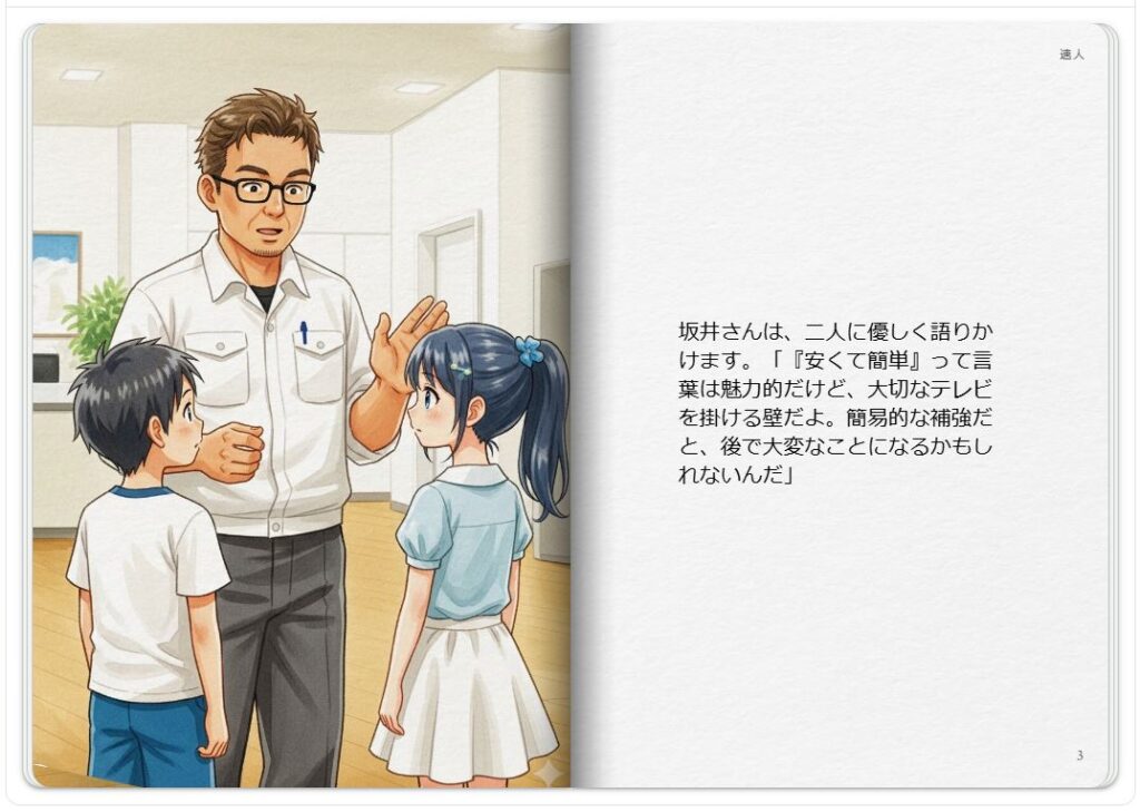 だから「テレビ・金具・補強・壁・暮らし方」って全部セットで考える必要がある。