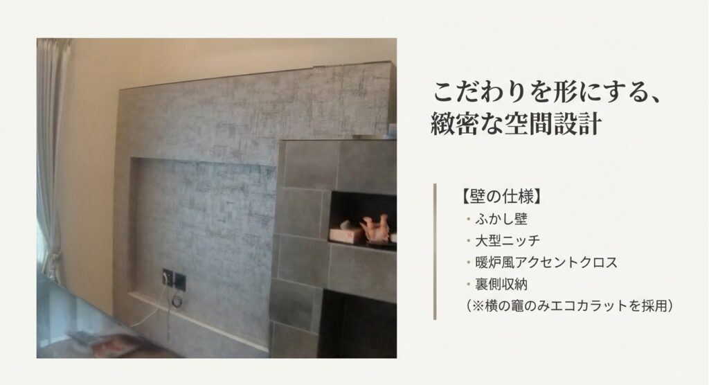 ✔️ メイン壁の正体 「ふかし壁」を作って「大型ニッチ(壁のくぼみ)」を設け、