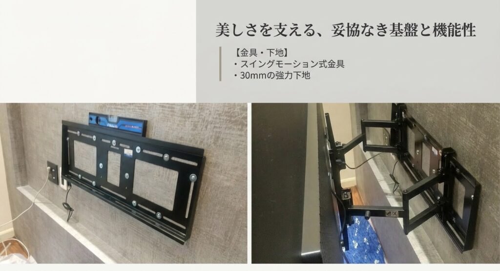 壁の中には、大型テレビを支えるための「厚さ30mm」の強力下地が入っています!