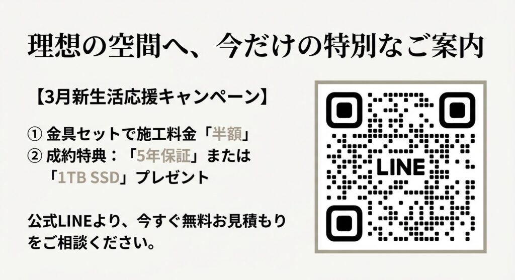 🉐 その1:施工料金が半額!【施工5年保証に延長】、もしくは【1TBのSSD】をプレゼント🎁!