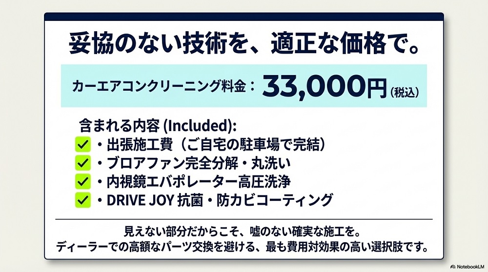 ・カーエアコンクリーニング(普通車):33,000円(税込)