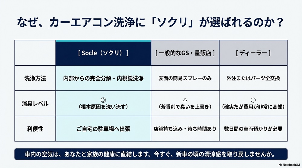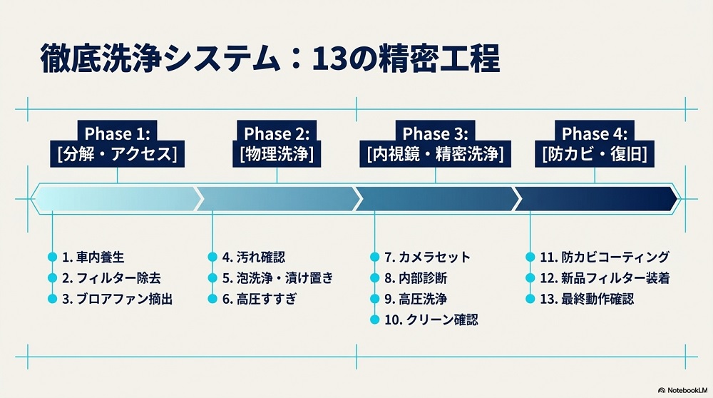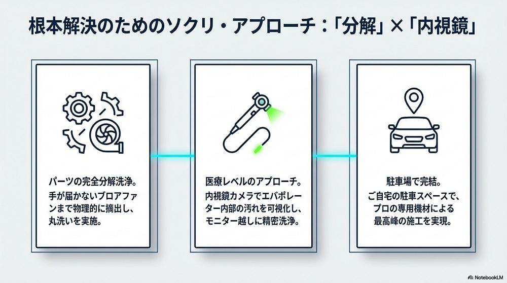 🔍 2. 徹底的かつ透明性の高い「ソクリのカーエアコン洗浄13工程」