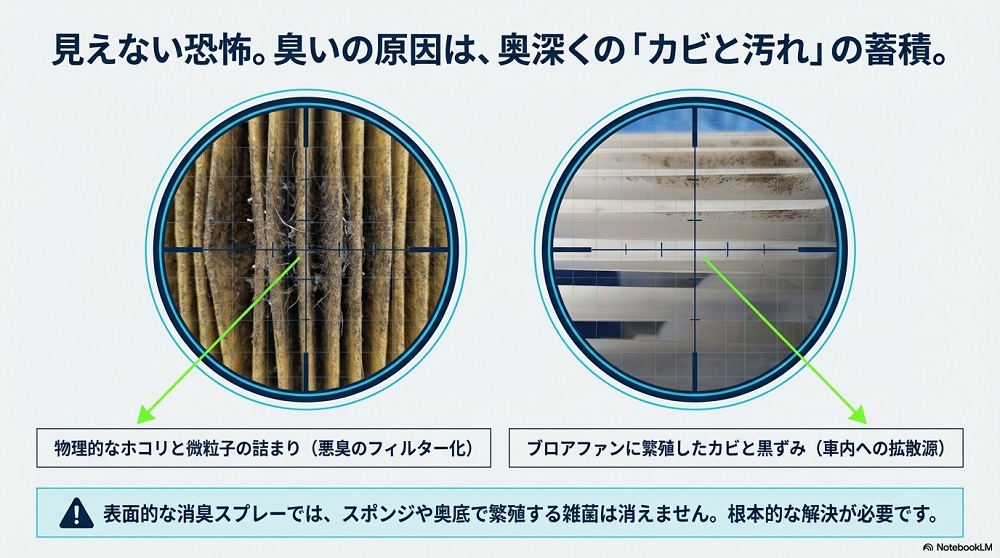 💡 1. 【結論】エアコンの悪臭は「エバポレーターのカビ」が原因!