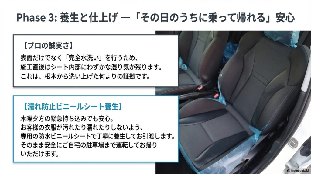 🛡️ 5. そのまま乗って帰れる安心ケアと劇的な変化