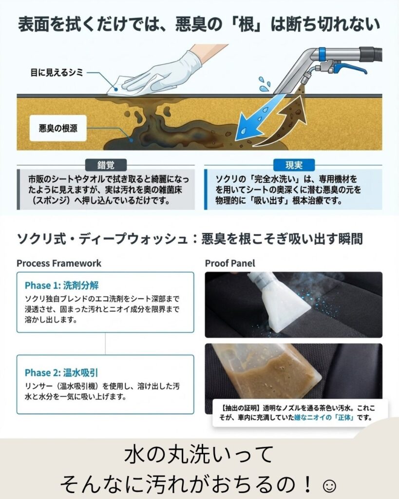 💧 3. 臭いの元を断つ「完全水洗い」の魔法(ソクリ式・ディープウォッシュ)