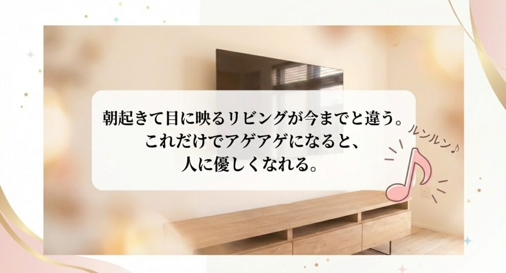 「朝起きて目に映るリビングが今までと違う。これだけでアゲアゲになると、人に優しくなれる🥰」