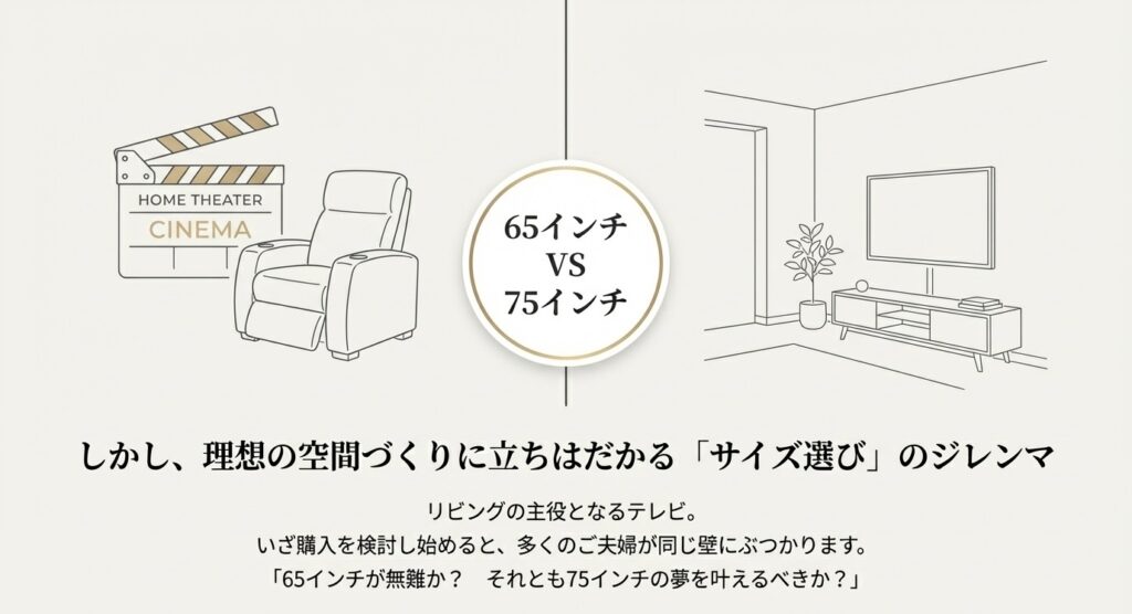 【夫婦バトル勃発!?】壁掛けテレビ「65インチ vs 75インチ」我が家のリビングに最適なのはどっちだ!?